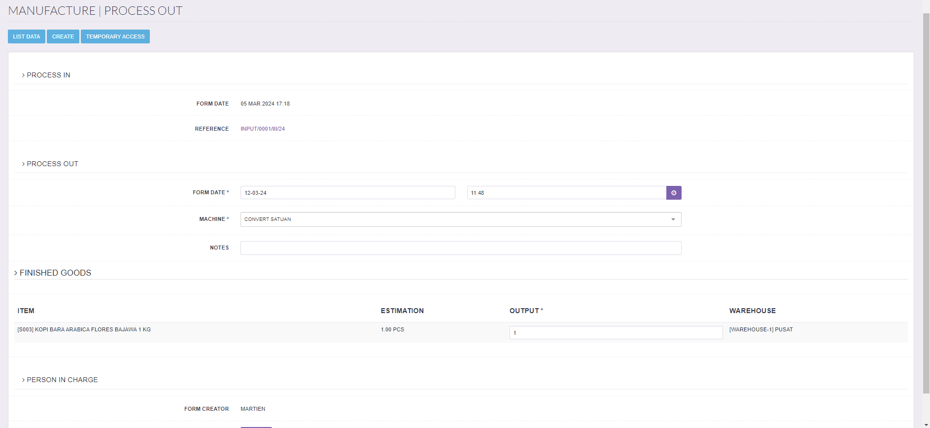 Berikut Langkah langkah membuat form Production Out&#x20;